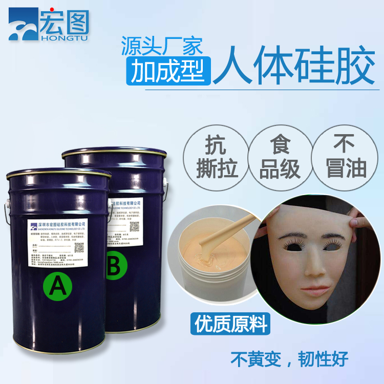 人體硅膠是一種加成型雙組份液體硅橡膠,無毒無味安全環(huán)保,硫化后會成為柔軟的彈性材料。 人體硅膠分AB雙組份,A組分硅膠,B組分固化劑,A:B一般為1:1。該產(chǎn)品既能室溫固化,也可以加溫固化,顏色為無色或皮膚色,其它顏色需聯(lián)系我司進(jìn)行特調(diào)。
