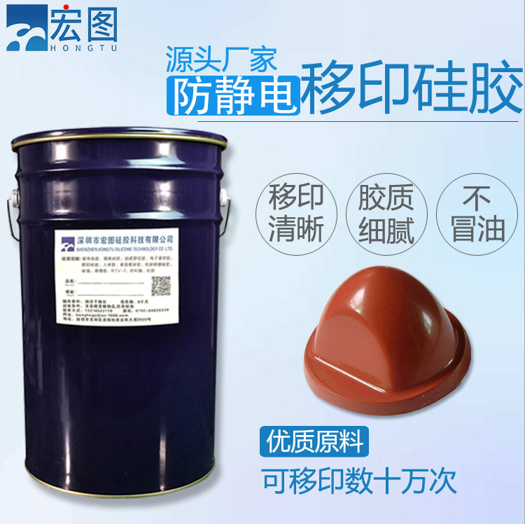 防靜電移印硅膠是一種雙組份加成型硅橡膠,分別是以A、B組分包裝的具有流動(dòng)性的液體硅膠,可制備優(yōu)異的移印彈性材料。膠質(zhì)細(xì)膩,無雜質(zhì),回彈力好,移印圖案清晰,是制作膠頭的首選環(huán)保材料!