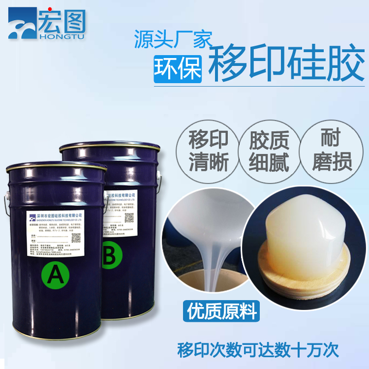 環(huán)保移印硅膠是一種雙組份加成型硅橡膠,分別是以A、B組分包裝的具有流動(dòng)性的液體硅膠,可制備優(yōu)異的移印彈性材料。膠質(zhì)細(xì)膩,無雜質(zhì),回彈力好,移印圖案清晰,是制作膠頭的首選環(huán)保材料!